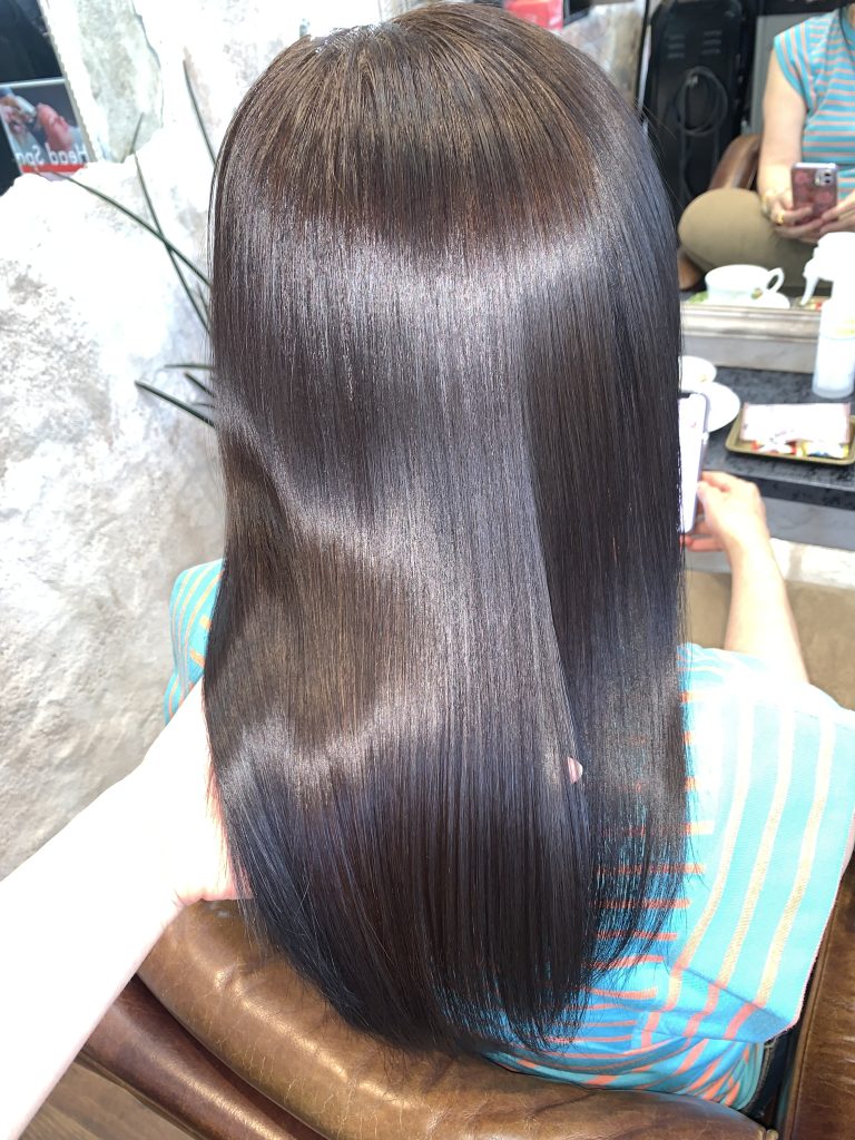 一年ぶりにご来店していただたお客様です!コロナなどの関係で、少し自粛をしていたのですが、髪のクセと纏まりが気になり、カットも自分で、やっていましたが、もうどうしようもなくご来店してくれました!柔らかい髪質ですが、意外と強いクセなのとホームカラーもしてしまってるので、ダメージを出さずにしっかりクセを伸ばしていきました!毛先の長さもバラバラでしたが、切ってキレイに揃いました!来年帰国する前にまた時間ありましたら、キレイにしましょうね!