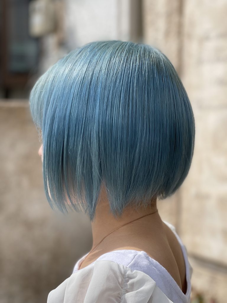 今日はスタッフを美容業界で1番難しいとされる水色にチャレンジ。