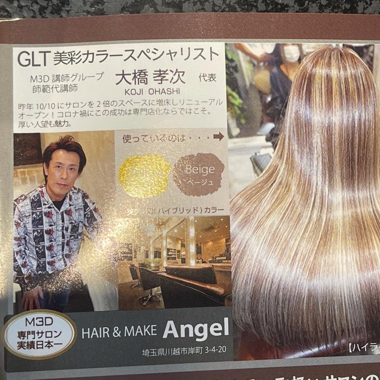 M3D師範代講師で、只今美彩ハイブリッドカラー研究中で、多彩なカラーリングを楽しんでいます。ハイライトやインナーカラー、イヤリングカラーは勿論、綺麗なミルクティーベージュも完成しています。ワンランク上の美彩ハイブリッドカラーを楽しみたい人は是非Angelまでお越しください。