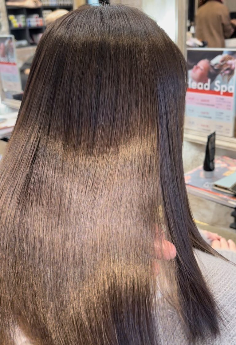縮毛矯正とカラーで乾燥のパサつき、シリコン系のシャンプーでトップのベタつきが気になるお客様御来店です。