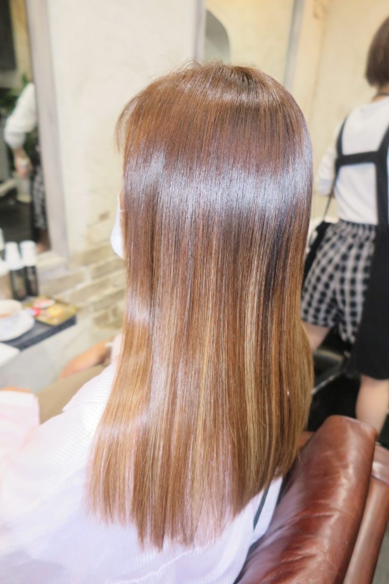 乾かしただけの状態でも広がりにくくツヤがでて更に修復してあげたらキレイにまとまる髪になりました!