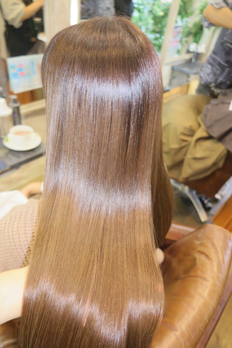 初めてのお客様で毛先に少しパサつきがありましたが、酸熱融合カラートリートメントでミネラルを沢山入れ癖を抑えていきました!