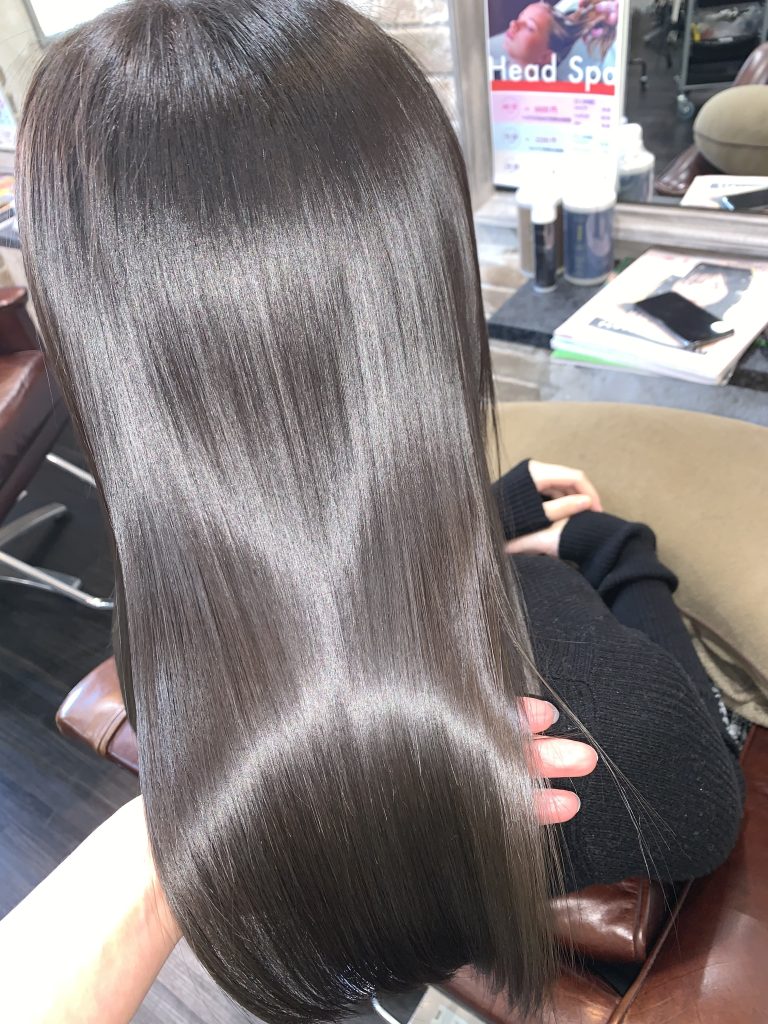 落ち着いたグレーアッシュでも、ただ暗いわけではなく透明感もあるので、おもくみえません。寒色系が好きな方にオススメです。