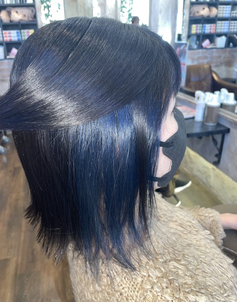 2ヶ月前にブリーチをしてインナーカラーをしましたが今回はインナーにブルーを入れました!