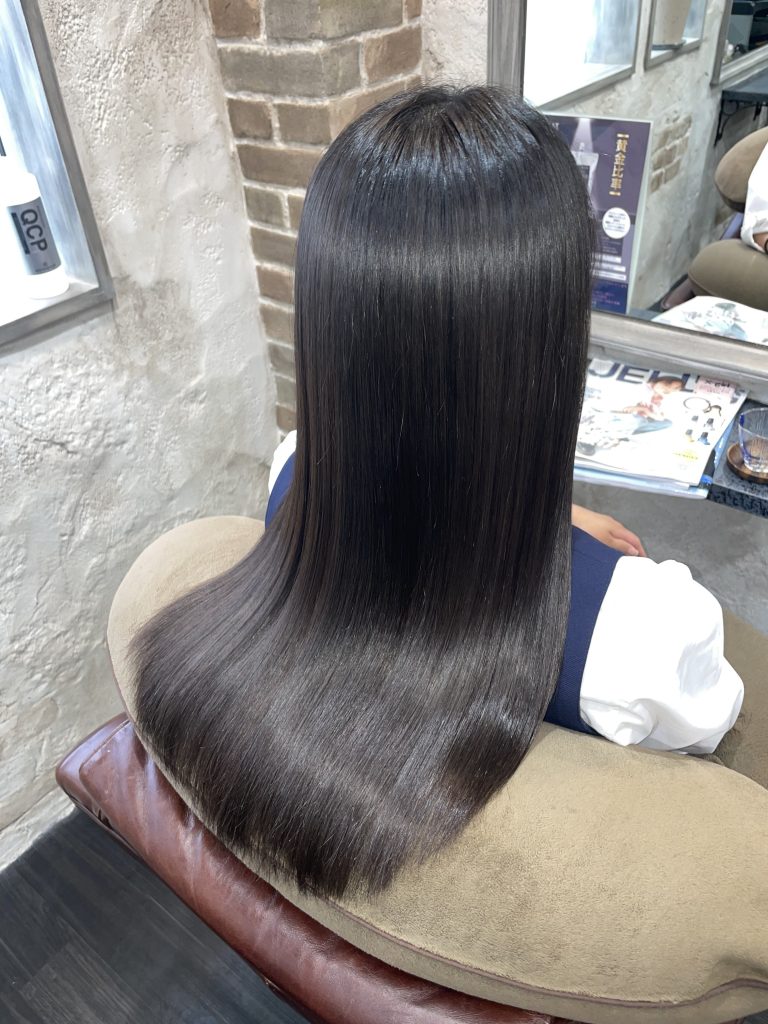 10ヶ月ぶりに縮毛矯正をかけに来ていただきました。湿気でうなりとクセがかなり出ていましたが、ミネラルをしっかり入れながらかけたお陰で柔らかい自然な仕上がりになりました。